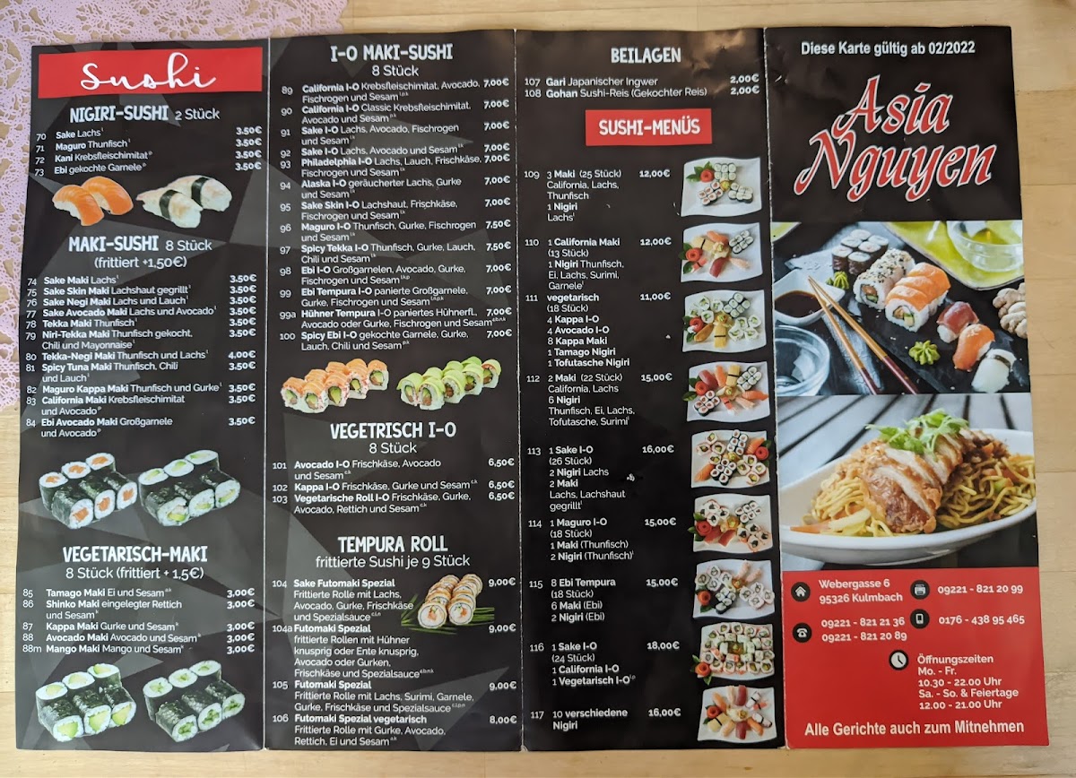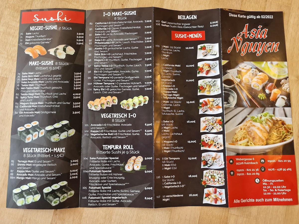 Welcome to Asia Nguyen, a hidden gem located at Webergasse 6 in Kulmbach, Germany. This delightful restaurant specializes in authentic Asian cuisine, with a menu that boasts an array of tantalizing dishes. The standout favorites include the exquisite tempura rolls and crispy fried duck with fried rice, both praised for their exceptional flavor and generous portion sizes.